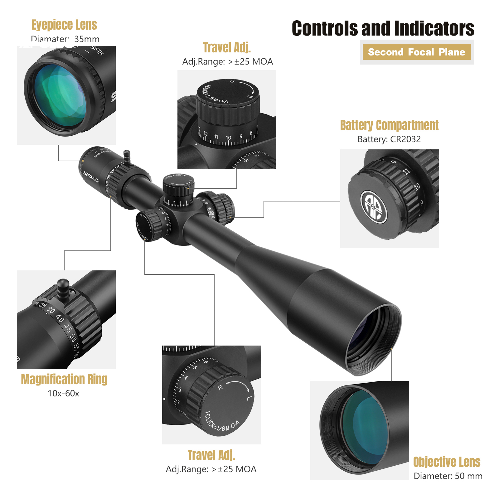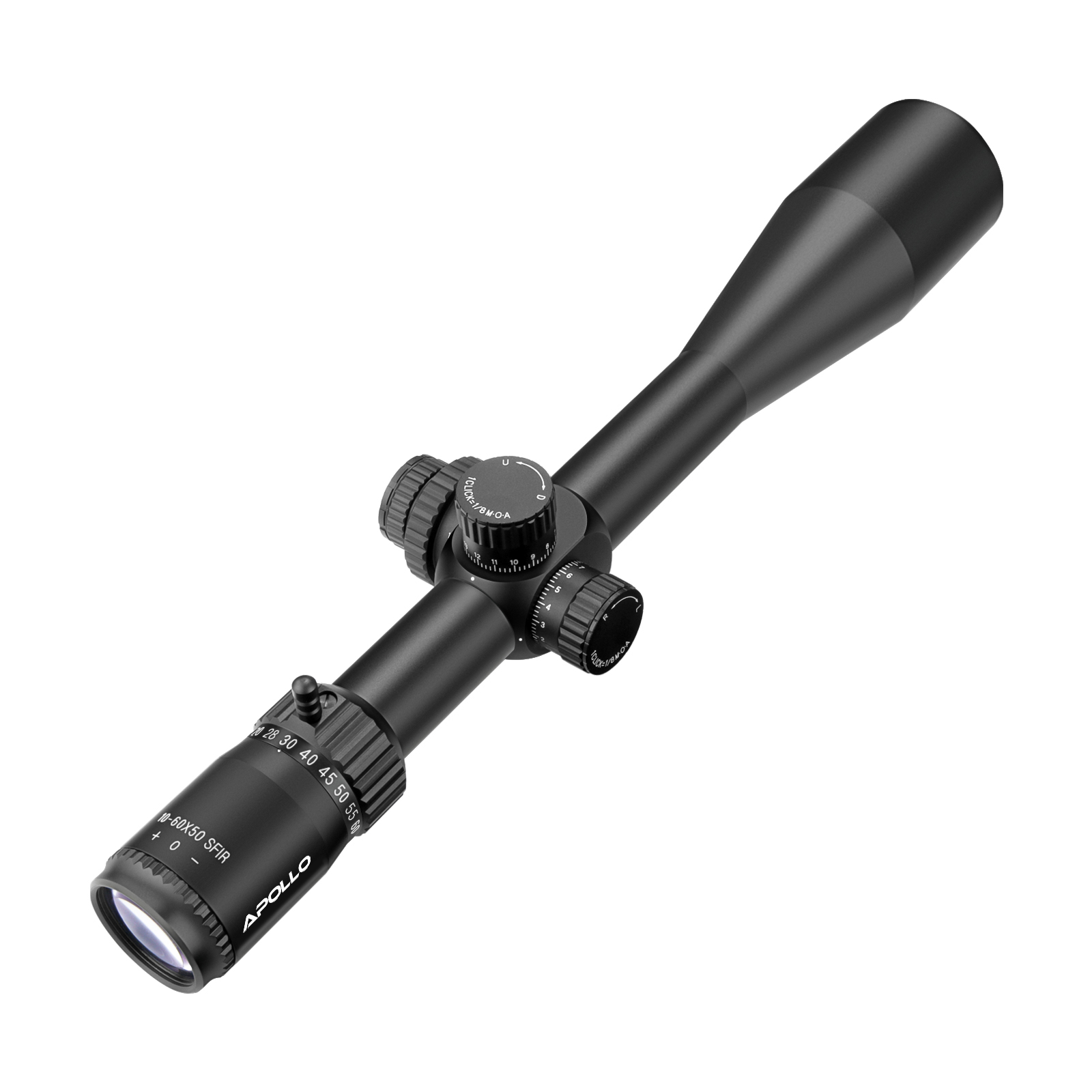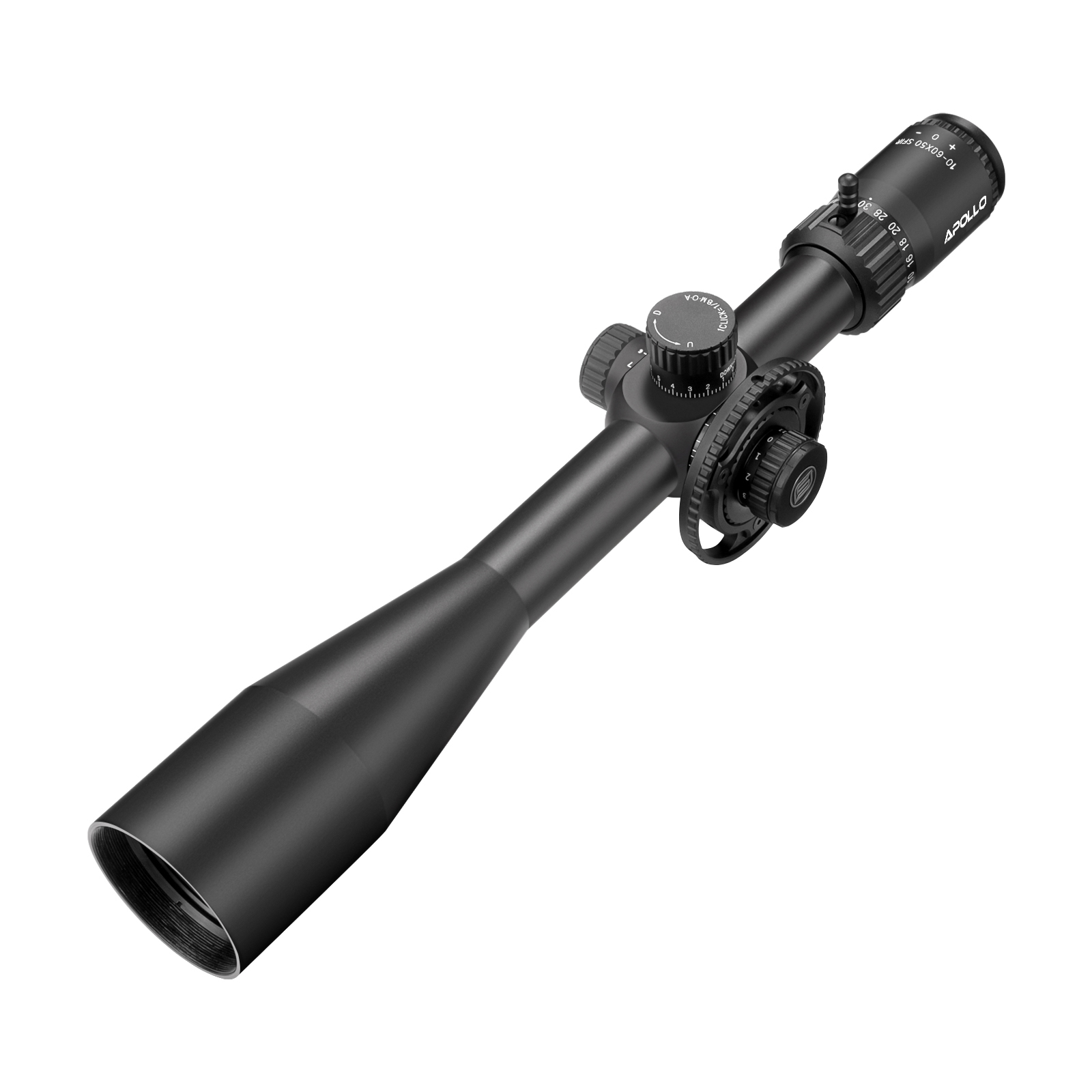 The Apollo Atlas is a full-powered long-range scope engineered for shooters who play at distance. With a massive 50 mm objective, true 10–60× magnification range, a precision 30 mm tube, and high-resolution glass, Atlas delivers the resolution, range, and turret control needed for extreme-range work, precision competition, and serious tactical applications. Built to hold zero under heavy use and designed for repeatable, minute-of-angle adjustments, the Atlas is your tool when the target is far and the margin for error is small.